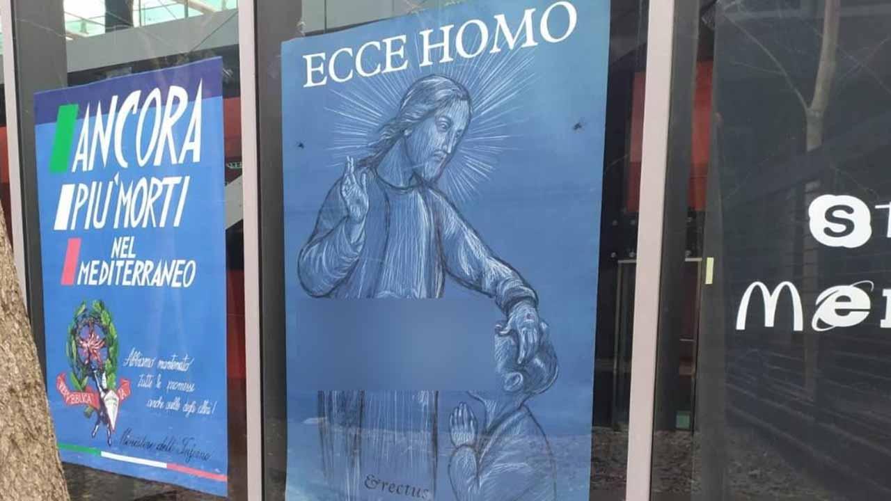 A Roma campeggiano per la città delle immagini che mostrano in maniera incredibile Gesù che si intrattiene in un rapporto erotico con un bambino in ginocchio dinnanzi a lui. “Ecce homo” recita il manifesto.