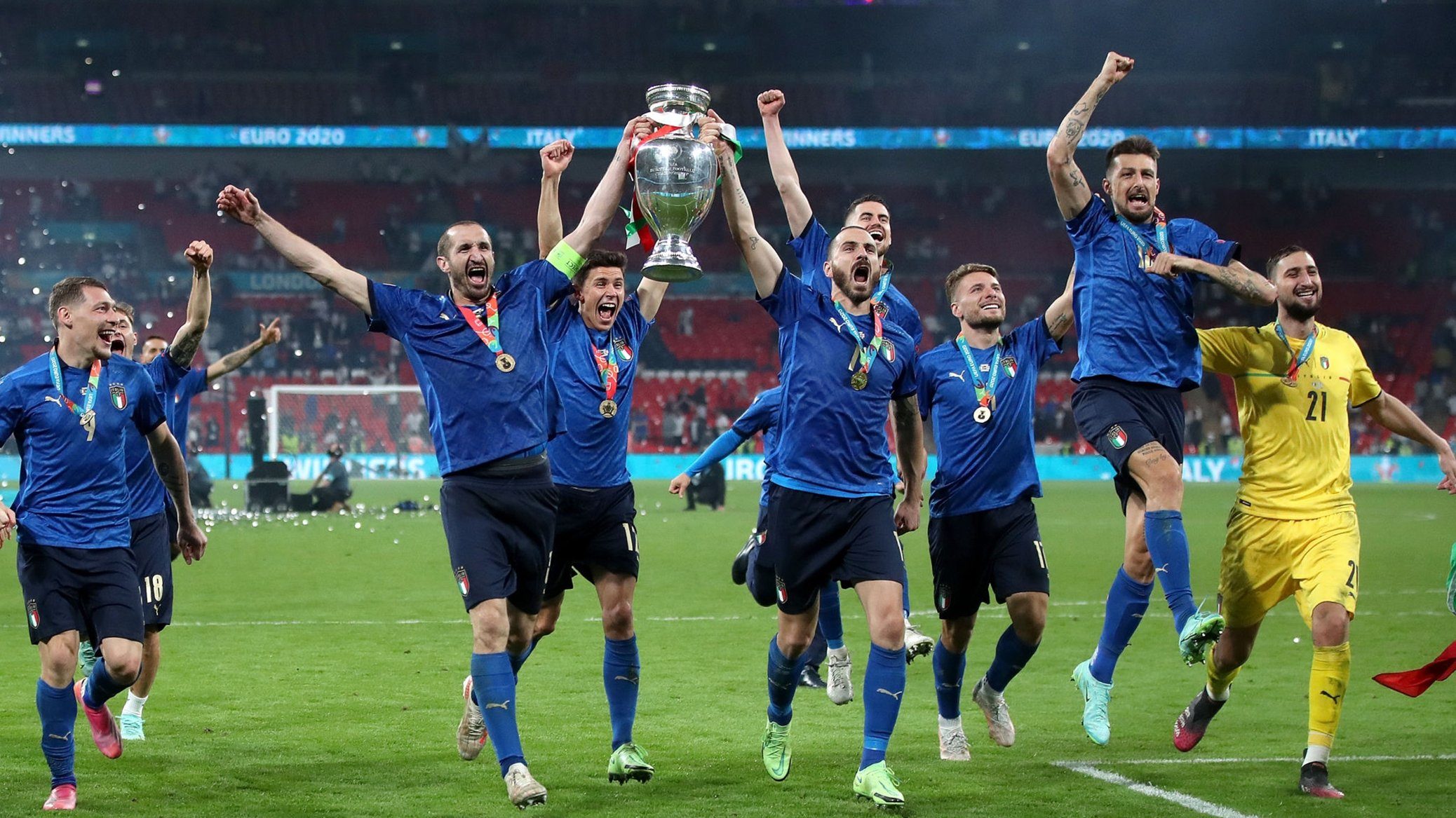 Il cielo è azzurro sopra Londra. L’Italia si è laureata campione d’Europa al termine di una finale intensissima disputata ieri sera contro l’Inghilterra. Sudata e sofferta la vittoria della Nazionale, arrivata ai rigori proprio sulla falsariga di quanto era accaduto in semifinale con la Spagna. Dominata la Nazionale dei Tre Leoni, alla ricerca del primo trofeo nella rassegna continentale, ma ancora alle prese con una vera e propria maledizione calcistica. Un rigore sbagliato da Rashford (entrato in campo appositamente per presentarsi dagli undici metri finali), due parate di Donnarumma su Sancho e Saka: questi gli errori fatali che sono costati il titolo agli inglesi.