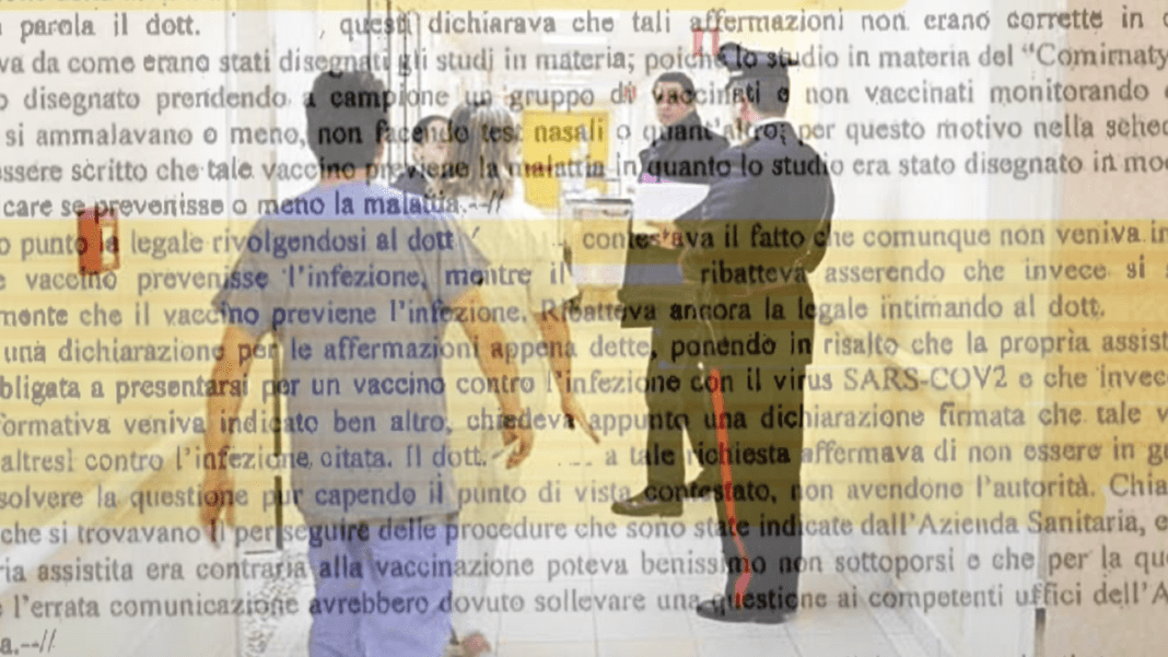 Ora è nero su bianco: all’arrivo dei carabinieri è stato redatto un verbale che non solo testimonia la mancata capacità del medico di assolvere alle richieste dell’avvocato e del suo assistito mettendo nero su bianco il fatto che il vaccino anti-Covid non può evitare l’infezione, ma che di fatto suggella l’inconsistenza di un Decreto Legge e i numerosi dubbi che continua a suscitare dal punto di vista scientifico.