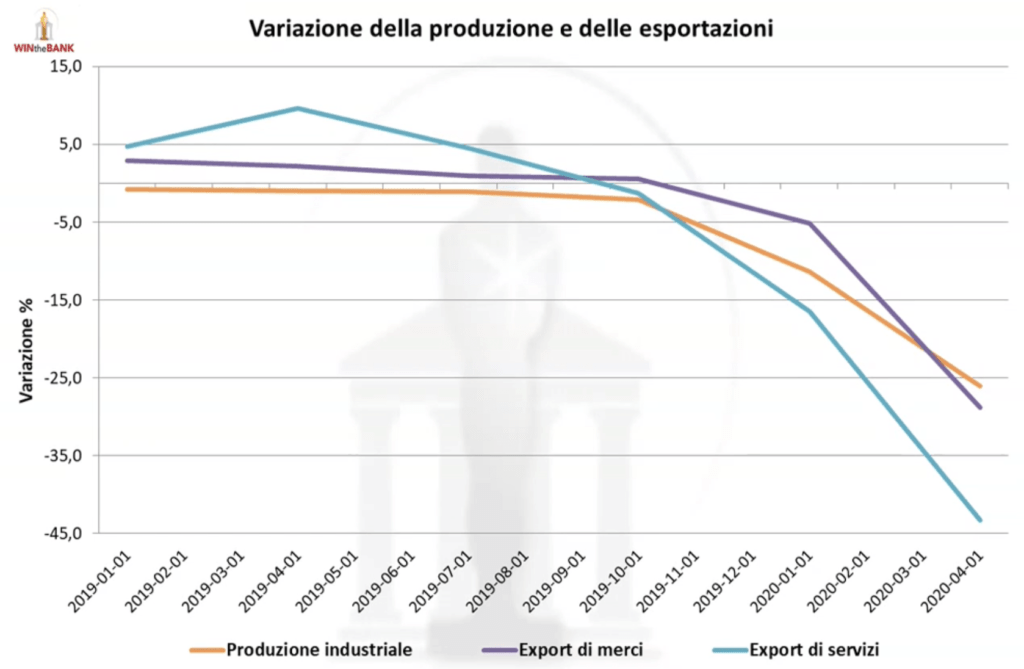 Se mi chiedete cosa è successo con il Covid è qui, cioè crollo della produzione industriale, crollo dell’export delle merci, crollo dell’export dei servizi. Questi sono numeri da guerra, sono valori simili a una guerra. Questo è quello che si è verificato in Italia”.