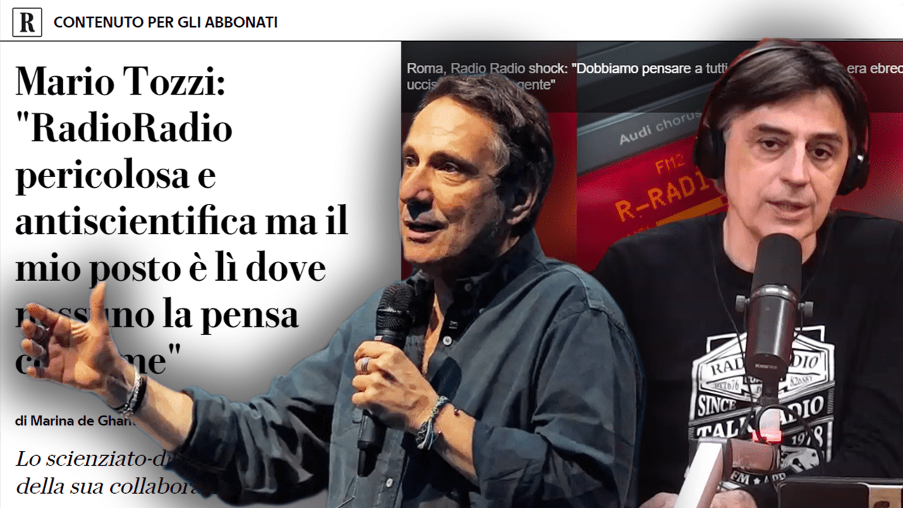 La campagna denigratoria si è spinta sino all’attacco di una testata giornalistica nei confronti di un’altra testata giornalistica. È di ieri giovedì 14 ottobre l’intervista di Repubblica al geologo Mario Tozzi, nella quale lo scienziato-divulgatore avrebbe definito “RadioRadio pericolosa e antiscientifica”. L’imprecisione, tanto grande quanto inquietante sta tutta nel titolo, che come spiegato in diretta dall’intervistato, non risponde a quanto affermato effettivamente nell’intervista, dove il ricercatore ha parlato soprattutto di questioni di merito, ma non ha mai usato l’aggettivo “pericolosa” riferendosi all’emittente.