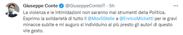 Il tweet del Presidente del Movimento 5Stelle Giuseppe Conte