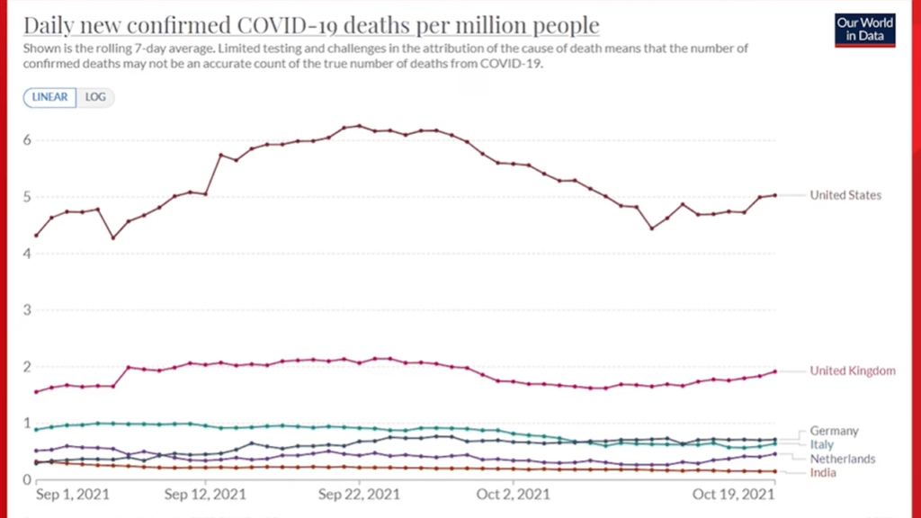 “Andiamo a vedere quanta gente muore realmente. L’andamento chiusure/aperture è quello che a noi interessa, ma è lineare. Ora come vengono conteggiati i decessi è una questione che riguarda un’altra discussione. A noi interessa vedere l’andamento della mortalità sulla base delle restrizioni. Prima era tutto chiuso, poi hai aperto. Che è successo? È morta più gente? Ci sono problemi?