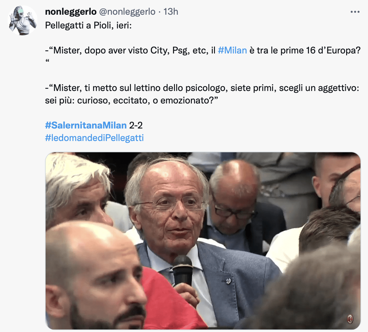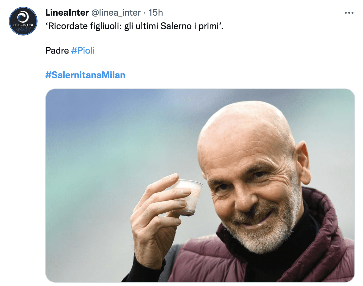 In campo, come nella vita, ci si può sempre riprovare; ma nel web non è così: perché il web è quel posto magico dove non c’è terzo tempo, o scambio di maglie; dalle irrisioni del web non si scappa, ed ecco che Iervolino diventa un veggente, e mister Pioli diventa Padre Pioli, che caldamente ricorda il suo motto ascetico secondo cui “gli ultimi Salerno i primi“.