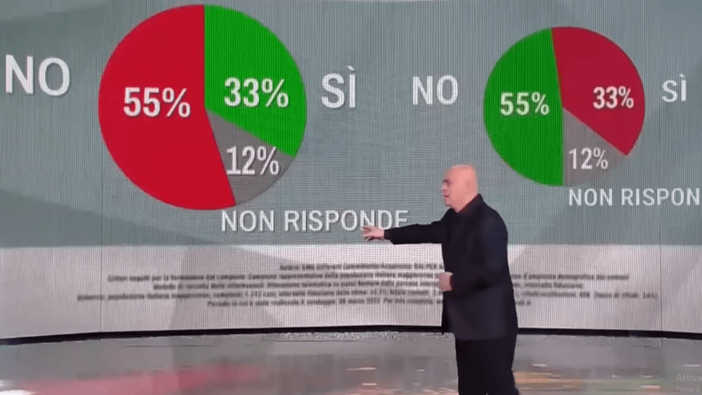 A proposito di ‘orrori’ dei ‘professionisti dell’informazione’ su Il Fatto Quotidiano è apparso un sondaggio lanciato dalla società EMG, con diagramma a torta a seguito e dall’intestazione “Armi all’Ucraina dall’Italia. Siete d’accordo?”, nel quale la maggioranza (55% delle persone) ha dichiarato di essere in disaccordo ma dalla grafica del diagramma sembrerebbe il contrario. “Ad occhio il ‘no’ lo vediamo come se fosse una parte minoritaria ma non lo è. Siccome il Governo aveva deciso in un certo modo, probabilmente qualcuno ha pensato di mostrarlo così”.