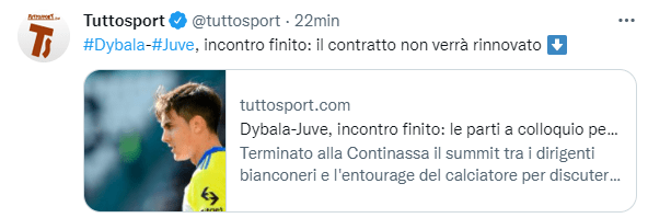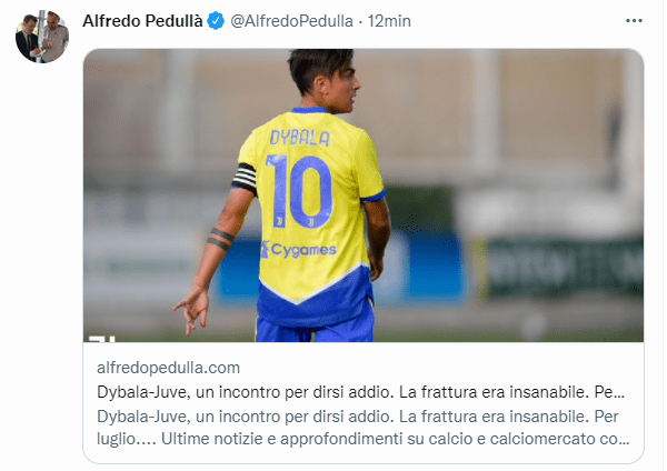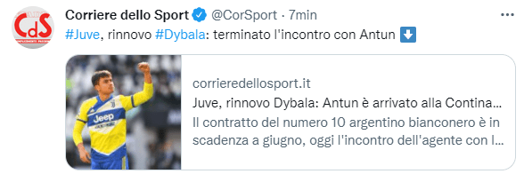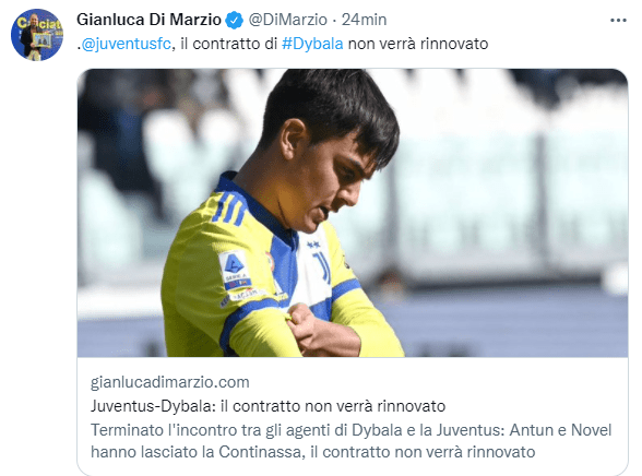 No, non è assolutamente un fulmine a ciel sereno l’addio di Dybala. Se voi pensate che all’argentino il contratto scadrà il prossimo 30 giugno, e siamo già a marzo inoltrato senza un accordo con la Juve, allora vuol dire che la fumata non può essere bianca. Normalmente si rinnova molto prima un contratto. Ripensiamo anche ai casi di Donnarumma e Calhanoglu. Personalmente son contento perché già da un paio di anni considero la Joya un giocatorino da giardino.
