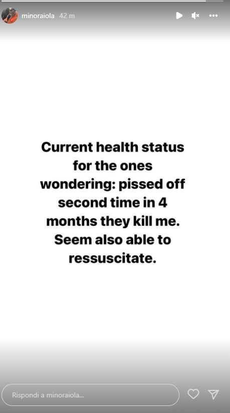 Continuano ad arrivare conferme dai suoi canali social, dopo il tweet la stories sul suo profilo ufficiale instagram: