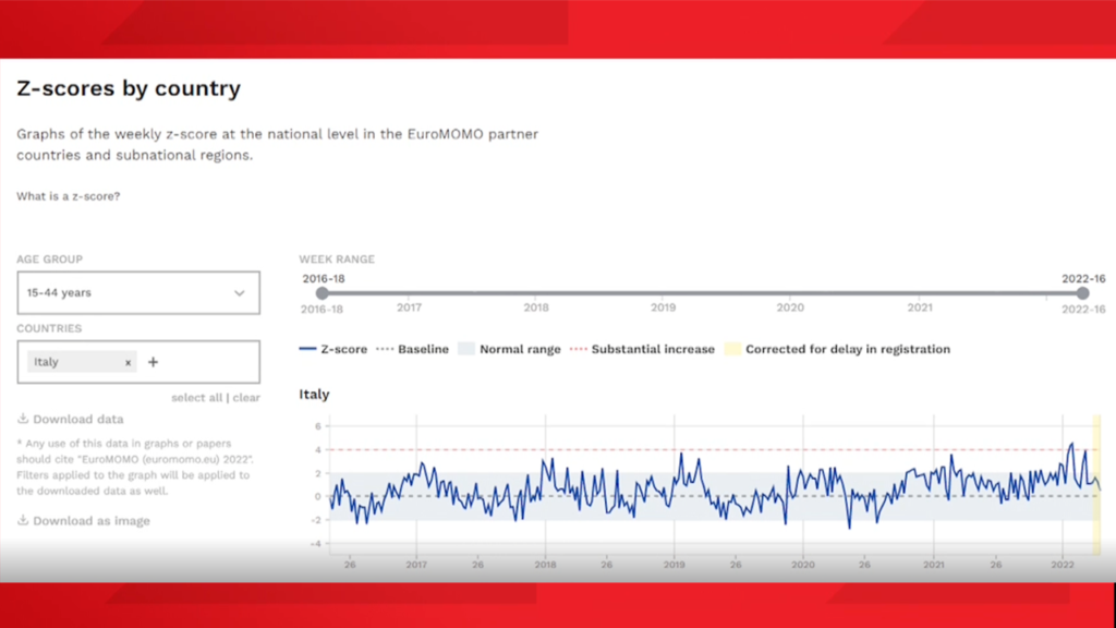 Prendendo in esame i dati di EuroMOMO, piattaforma europea per il tracciamento attivo della mortalità, il prof. Alessandro Meluzzi e Alberto Contri individuano discrepanze significative rispetto alla narrazione ufficiale. Stupiscono infatti, come spiega Fabio Duranti, da un lato un eccessivo allarme per i decessi complessivi nel 2022, considerabili nei limiti del picco stagionale della mortalità, dall’altra un significativo – e sospetto – aumento delle morti per i segmenti di popolazione in giovane età.