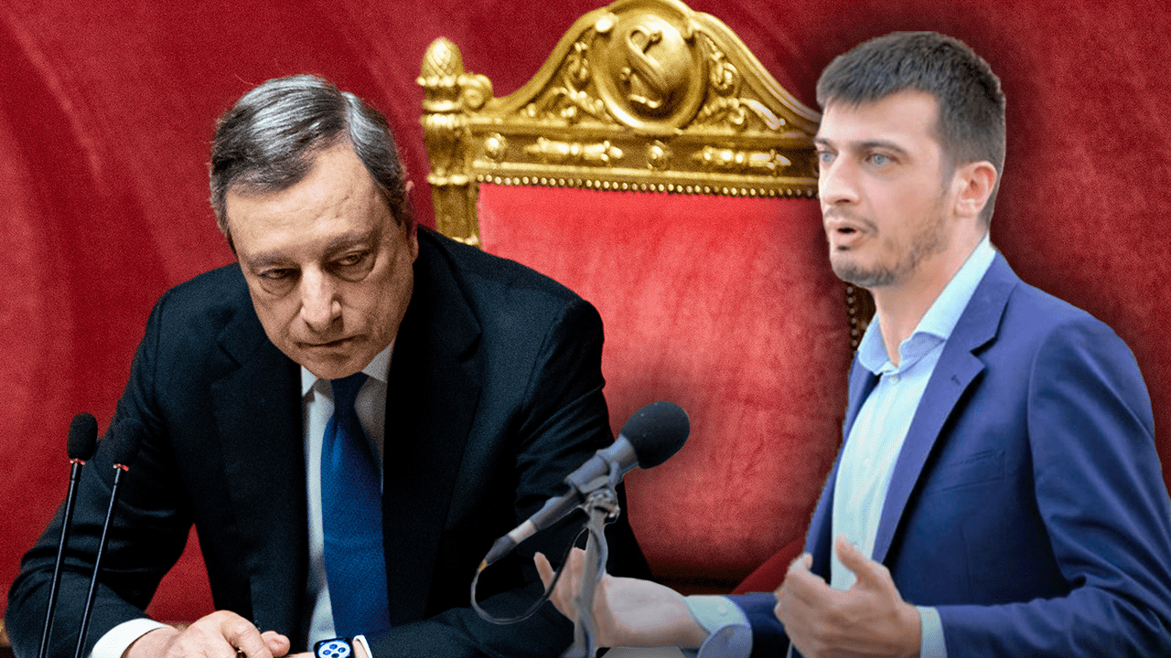Oggi le tocca, oggi le tocca, mi spiace, le sono solidale. Visto che non capita così spesso di avere la possibilità di parlare con lei o, comunque, almeno di farle arrivare la nostra voce, io ne approfitto per ricordarle che lei ha ricevuto a suo tempo un mandato politico, quando ha assunto la carica di Presidente del Consiglio, legato a un contesto totalmente differente da quello attuale, un contesto emergenziale che ora non vi è più e legato a specifiche questioni che lei aveva il mandato di gestire, quindi la gestione del COVID – e lo ha fatto attraverso ricatti, attraverso il massacro e la distruzione della piccola e media impresa, ma quella è un’altra storia – e poi la gestione di questi quattro spiccioli del PNRR.
