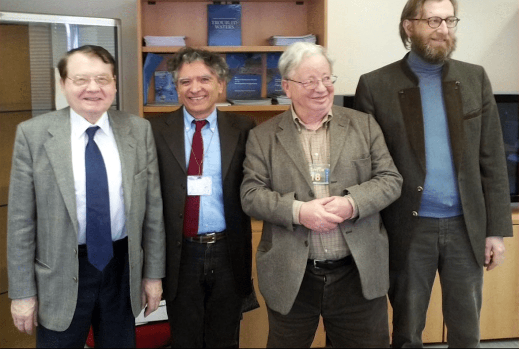 Del Giudice incontrava e collaborava con molti grandi scienziati dell’epoca Moderna. Tra questi Luc Montagnier, come testimoniano scatti e parole di Tedeschi: “Questa immagine risale al primo incontro con Montagner in un ristorante di Milano. Abbiamo organizzzato queta cena come primo incontro con Luc e qui sono a giocare a scacchi insieme.“