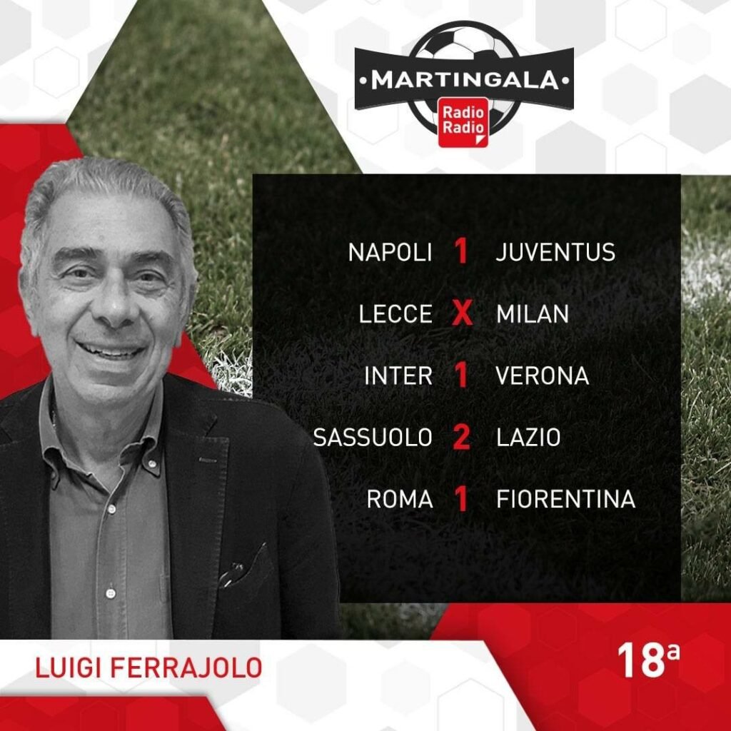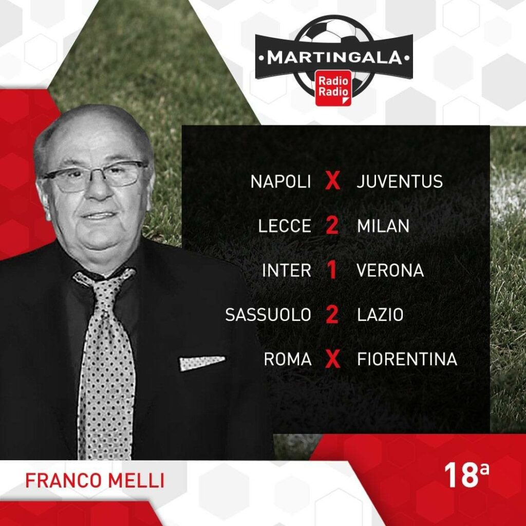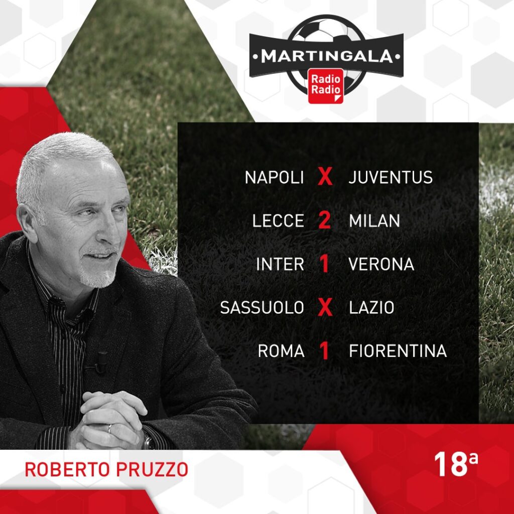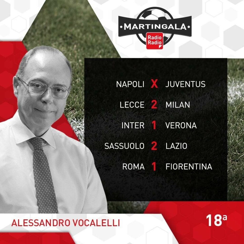 Ecco le Martingale: dopo gli ottavi di Coppa Italia ritorna il campionato. L’anticipo di stasera alle 20.45, vede andare in scena al Maradona, il big match Napoli-Juventus. Il Napoli conduce la corsa scudetto con 7 lunghezze di distanza sui bianconeri, ma dopo la sconfitta di San Siro ha bisogno dei 3 punti per tenere lontane le big. La giornata di Sabato inizia alle 15.00 con Monza-Cremonese, poi seguono le milanesi, alle 18.00 con Lecce-Milan e alle 20.45 Inter-Verona. Domenica alle 12.00 Sassuolo-Lazio, mentre alle 15.00 abbiamo Torino-Spezia e Udinese-Bologna. Alle 18.00 Atalanta-Salernitana e alle 20.45 Roma-Fiorentina. Si conclude la 18° giornata, lunedì alle 20.45 con Empoli-Sampdoria.