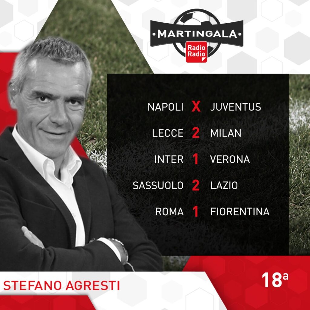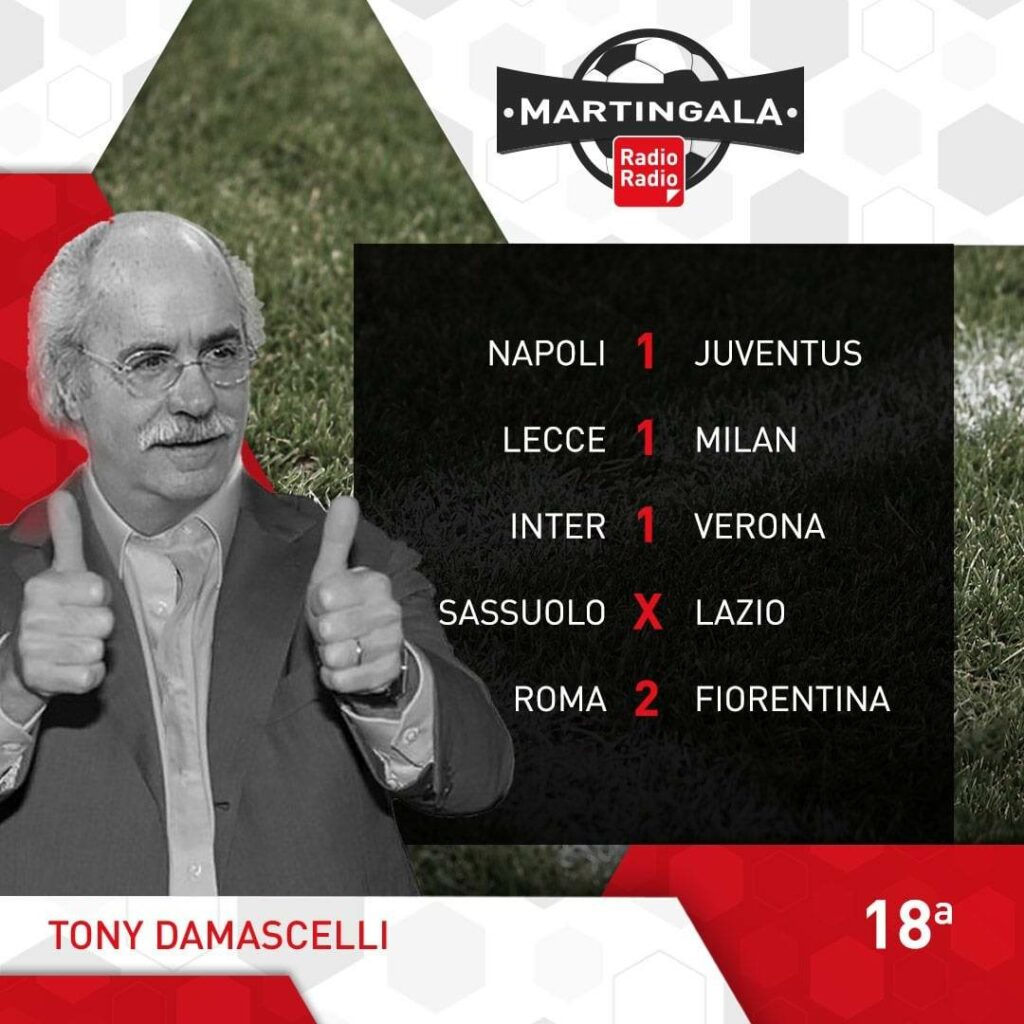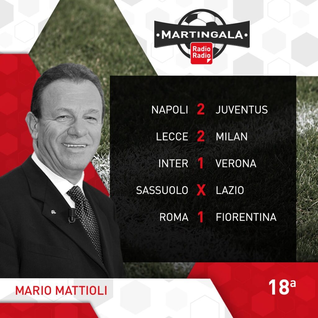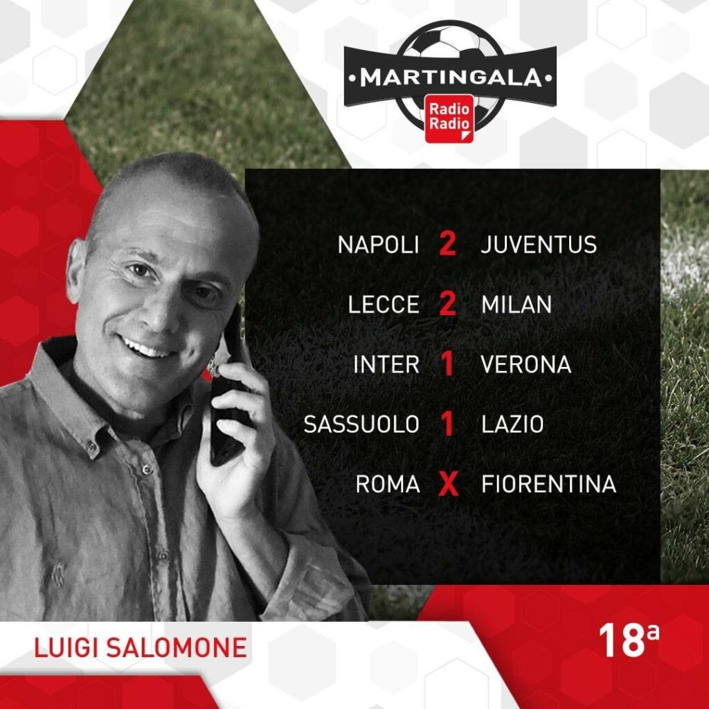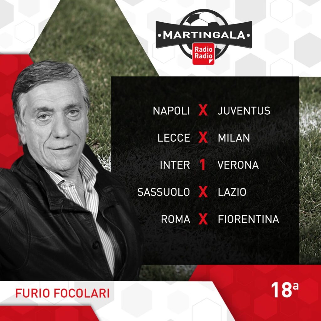 Ecco le Martingale: dopo gli ottavi di Coppa Italia ritorna il campionato. L’anticipo di stasera alle 20.45, vede andare in scena al Maradona, il big match Napoli-Juventus. Il Napoli conduce la corsa scudetto con 7 lunghezze di distanza sui bianconeri, ma dopo la sconfitta di San Siro ha bisogno dei 3 punti per tenere lontane le big. La giornata di Sabato inizia alle 15.00 con Monza-Cremonese, poi seguono le milanesi, alle 18.00 con Lecce-Milan e alle 20.45 Inter-Verona. Domenica alle 12.00 Sassuolo-Lazio, mentre alle 15.00 abbiamo Torino-Spezia e Udinese-Bologna. Alle 18.00 Atalanta-Salernitana e alle 20.45 Roma-Fiorentina. Si conclude la 18° giornata, lunedì alle 20.45 con Empoli-Sampdoria.