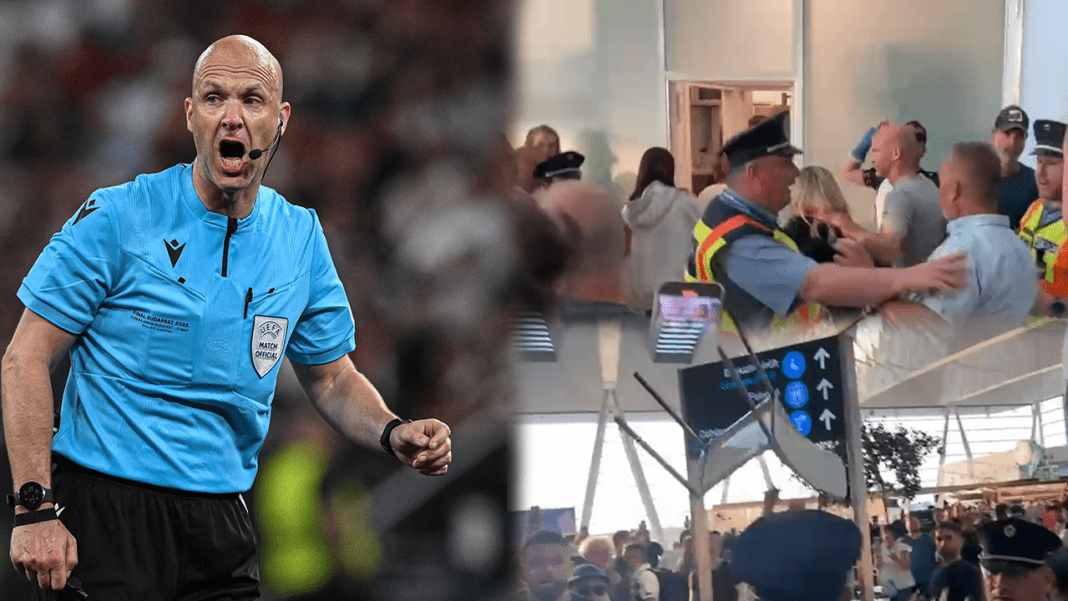 Al ritorno dalla finale di Europa League, l’arbitro Anthony Taylor è stato bersagliato in aeroporto dai tifosi, ancora infuriati per il rigore non concesso ai giallorossi. Un tocco di mano in area di rigore di Fernando non poco sospetto, revisionato da un veloce check del VAR, ma non assegnato. La reazione è passata in primis attraverso le parole di Mourinho, sia nel post partita (“Faccia ca***te in Champions“) che nella zona mista, dove il lusitano gli ha riferito: “Sei una f***uta disgrazia!“