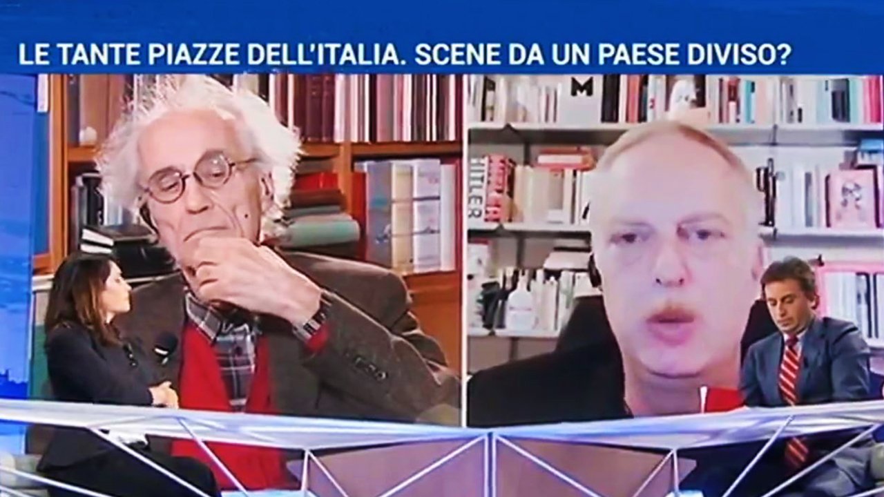 Non è che loro sono il popolo, e noi che siamo il 90 % e ci siamo vaccinati con convinzione, non siamo il popolo: il popolo siamo noi, e loro sono delle frange minoritarie. Li rispettiamo perché siamo in democrazia, mentre i regimi non li avrebbero rispettati, li avrebbero spianati con le Forze dell’Ordine. Non ne accetto i ricatti, in base a questa fantasia delirante che loro siano il popolo”.
