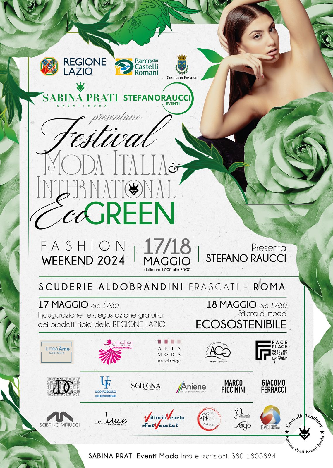 Si svolgerà venerdì 17 e sabato 18 maggio nella splendida location delle Scuderie Aldobrandini a Frascati il Festival della Moda EcoGreen, organizzato da Sabina Prati e Stefano Raucci con il patrocinio e il contributo di Regione Lazio e Parco dei Castelli Romani e il patrocinio del comune di Frascati.
