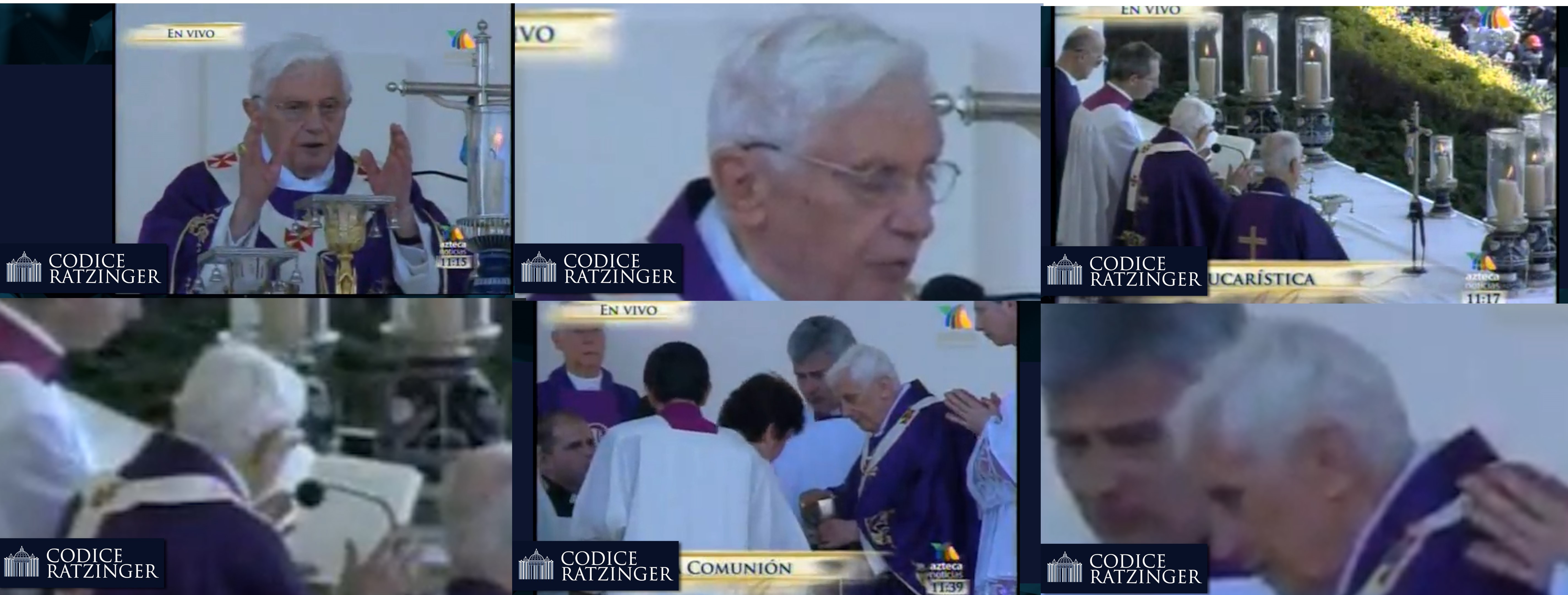 Tale versione contrasta paurosamente non solo con quella di Benedetto XVI, ma anche con quella fornita nel 2023 da Mons. Gaenswein che nel libro “Nient’altro che la verità” parla di un incidente avuto dal Papa al mattino del 25 marzo, incespicando nel tappetino del bagno. Si sarebbe prodotto una ferita di tale importanza da dover richiedere un tampone di garza (per arginare il sanguinamento) tenuto nascosto dalla papalina, tanto che durante la messa nel Parco del Bicentenario di Leon, il cerimoniere non gliel’avrebbe tolta durante la consacrazione proprio per evitare di mostrare la medicazione.