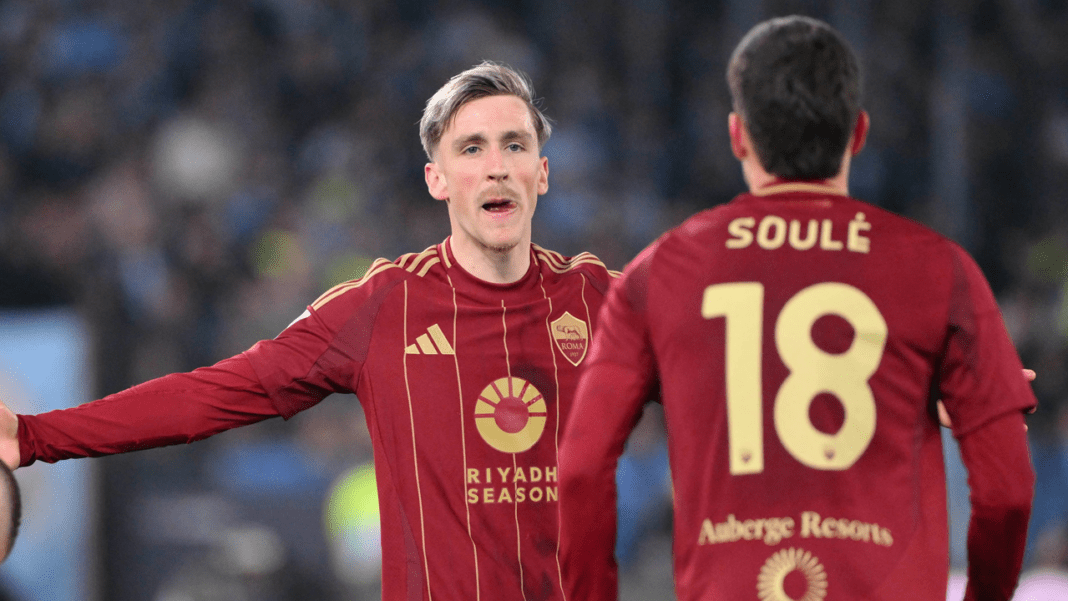 Finisce 1-1 il Derby della Capitale. Il vantaggio della Lazio con Romagnoli, dagli sviluppi di un corner, viene annullato dalla super magia di Soulè grazie ad una prodezza dalla distanza. Lo spettacolo è sugli spalti con le splendide coreografie delle due tifoserie,
