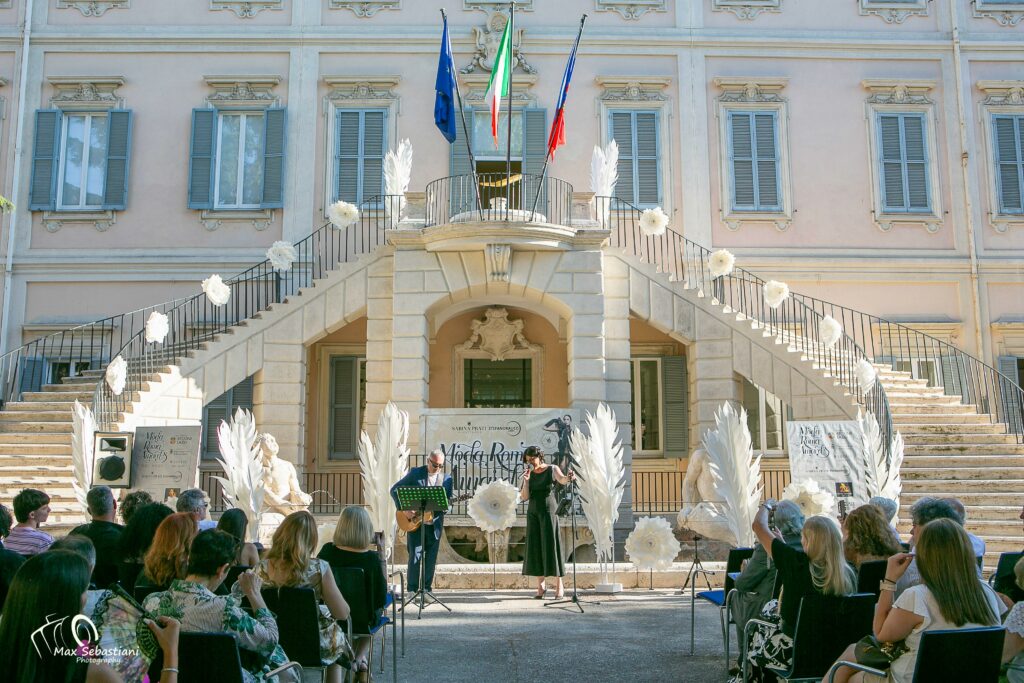 Ad arricchire lo spettacolo le creazioni artistiche e i fiori giganti realizzati da Flordecor Sepa di Svetlana Fedotova, che hanno impreziosito la suggestiva scalinata e il giardino di Villa Altieri.