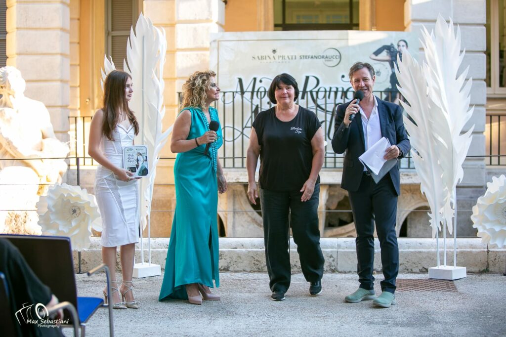 Ad aprire l’evento sono stati gli organizzatori: il presentatore Stefano Raucci, che ha scandito i tempi dello show con ritmo ed eleganza, e l’agente di moda Sabina Prati, che nell’occasione ha indossato un bellissimo abito di Hanita Couture e ha curato nei dettagli backstage e scaletta con la ben nota professionalità.