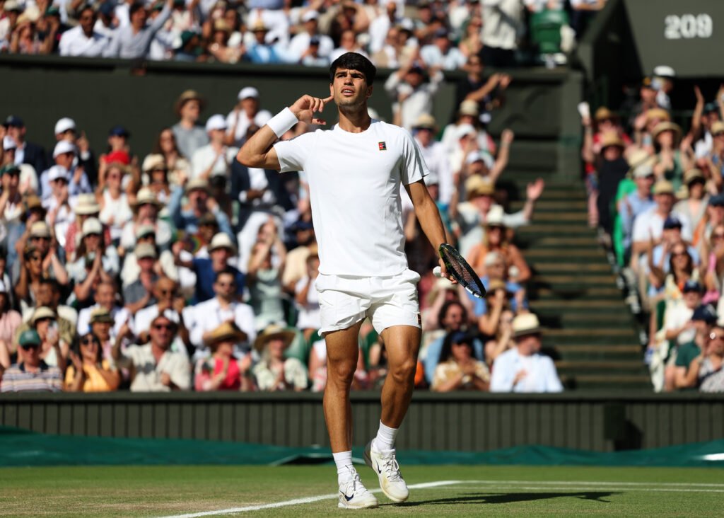 Tennis al massimo livello possibile: la finale di Wimbledon è già storia, la gloria se la prende Jannik Sinner. Il primo italiano a vincere il torneo più prestigioso del tennis mondiale, batte il suo rivale Carlos Alcaraz in 4 set. La partita conclusiva del torneo, di livello altissimo, consacra una rivalità che entra con ancor più forza nel novero dei grandi duelli tennistici di tutti i tempi. Il numero uno del mondo batte il numero due del ranking Atp dopo essere passato in svantaggio, il punteggio finale recita: 4-6, 6-4, 6-4, 6-4. Alcaraz non è riuscito a ripetere quanto fatto al Roland Garros, Sinner si è preso la rivincita che aspettava. Quello che rimane negli occhi degli appassionati di tennis è la voglia di celebrare il momento, nell’attesa della prossima sfida tra questi due campioni.