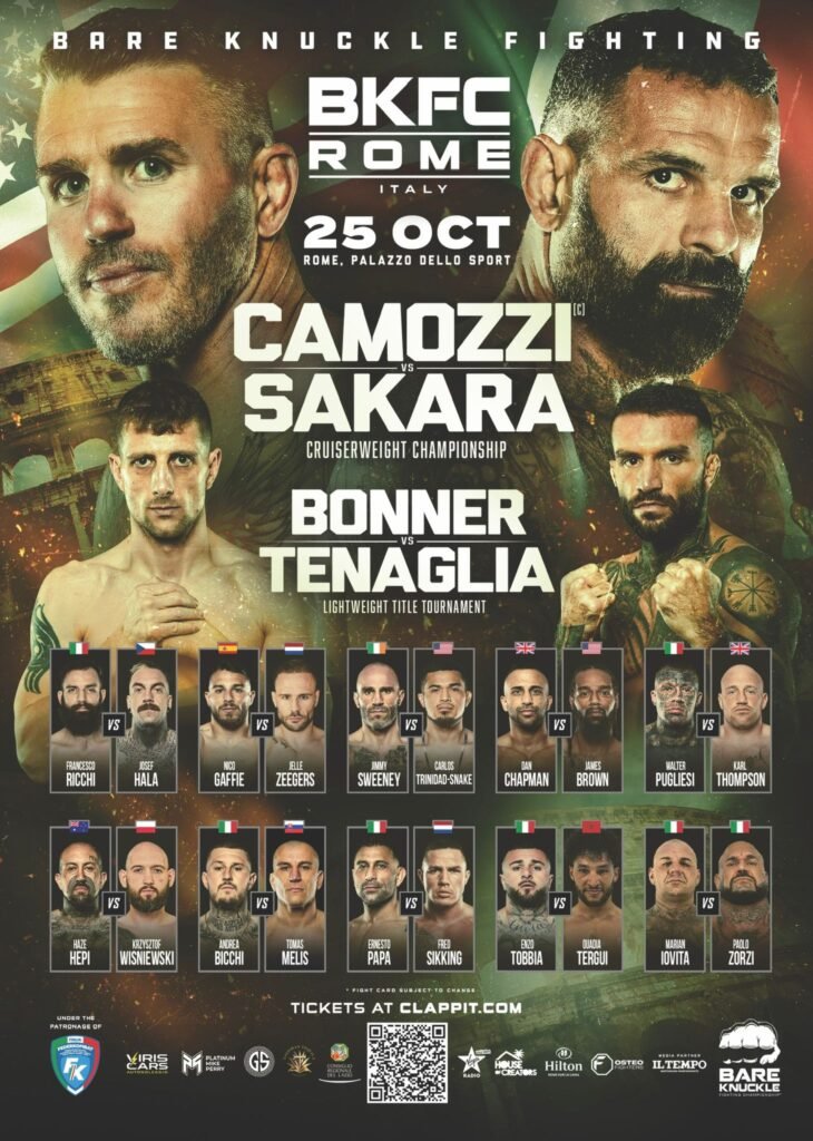 ROMA – Sabato 25 ottobre 2025 il Palazzo dello Sport di Roma (PalaEur) diventerà teatro di uno degli eventi sportivi più attesi dell’anno: la BKFC 83, la prestigiosa Bare Knuckle Fighting Championship, sbarca per la prima volta in Italia portando in scena la sfida mondiale tra Chris Camozzi, campione Cruiserweight BKFC, e Alessio “Legionarius” Sakara, icona delle MMA italiane e internazionali.