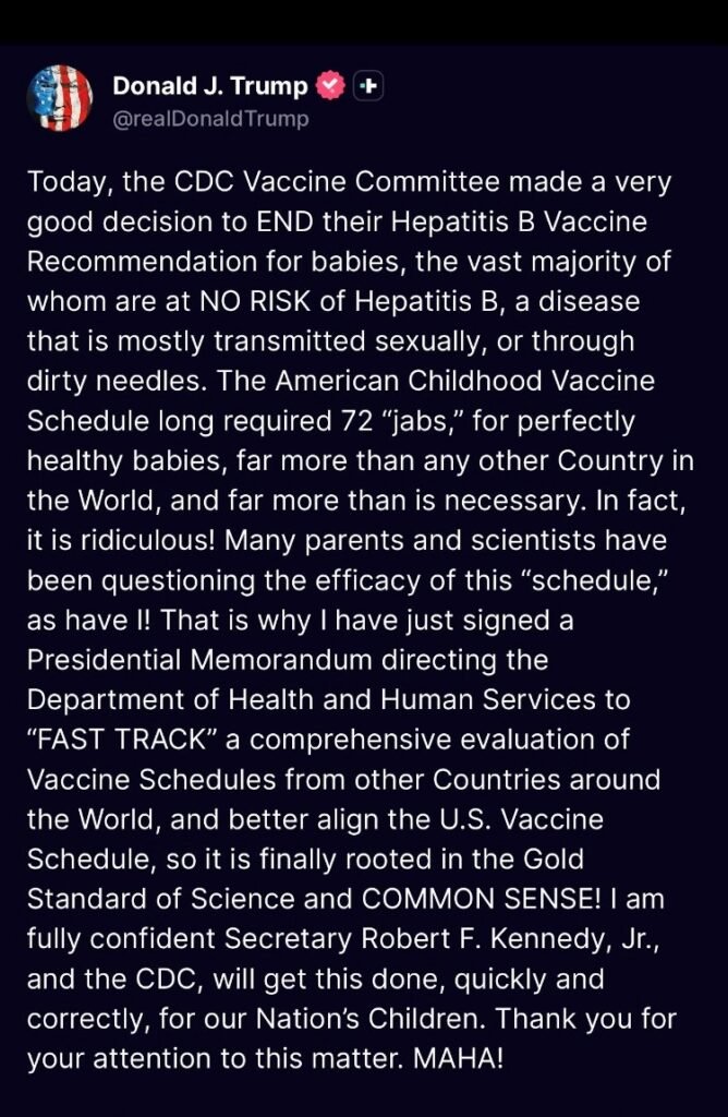 Per Holzeisen, la decisione dell’amministrazione Trump di rivedere l’intero piano vaccinale pediatrico non è un’iniziativa politica, ma una conseguenza obbligata delle rivelazioni emerse. “Hanno revocato la raccomandazione per tutti i neonati del vaccino contro l’epatite B se le madri al test risultano negative“, ricorda, evidenziando un cambiamento che conferma la gravità delle criticità accumulate. Il richiamo ai lavori dell’ACIP, e alle posizioni espresse da figure come Malone e Levy, serve a mostrare che anche all’interno degli organismi tecnici più influenti sta crescendo la consapevolezza di un eccesso di automatismi nelle raccomandazioni pediatriche. La revisione avviata negli Stati Uniti appare, nella prospettiva di Holzeisen, come il primo segnale concreto che il sistema sta riconoscendo la necessità di fermarsi, correggere e ripristinare trasparenza e prudenza nelle scelte che riguardano i più piccoli.