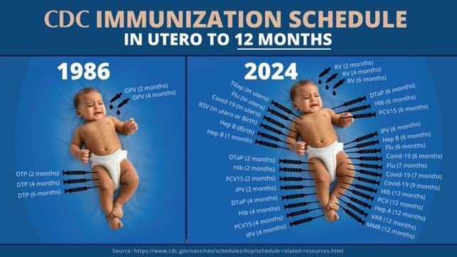Per Holzeisen, l’aumento del numero di vaccinazioni previste nell’infanzia non è un semplice aggiornamento sanitario, ma il segno di una deriva strutturale. “C’è stata una proliferazione dei piani vaccinali in certi Paesi come gli Stati Uniti e l’Italia”, afferma, richiamando un trend che negli ultimi decenni ha trasformato radicalmente l’approccio alla prevenzione pediatrica. Il confronto storico non lascia dubbi: si passa da pochi vaccini fondamentali a un calendario che oggi comprende circa quindici sostanze diverse, somministrate in un numero crescente di dosi. “Negli Stati Uniti, anche con quelli raccomandati, circa 15”, puntualizza, ricordando che “una cosa è la sostanza vaccinale, l’altra è la dose e il richiamo”.