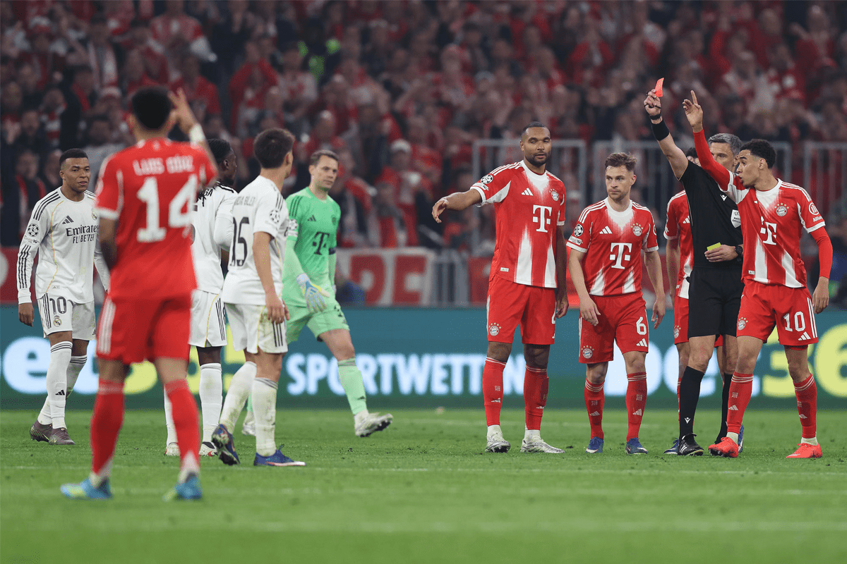 Per larghi tratti, il match è stato intenso ma corretto, con le due squadre impegnate in un continuo botta e risposta sul piano del risultato. Poi, nel finale, la gara si è completamente incendiata. L’episodio chiave arriva all’86′: Eduardo Camavinga, già ammonito, interviene su Harry Kane a centrocampo in un contrasto tutt’altro che violento. Un intervento che, però, l’arbitro Vincic decide di punire con il secondo giallo, tra le proteste furiose dei giocatori del Real Madrid.