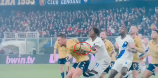 Minuto 42: l'Inter passa avanti con Arnautovic. Tuttavia esplode subito qualche protesta del Genoa. L'episodio sospetto vede il nerazzurro Bisseck mettere le mani sulla...